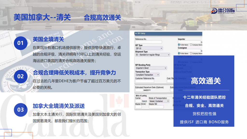 在美国所有港口机场提供服务,提供货物快速放行、卓越的合规评级;